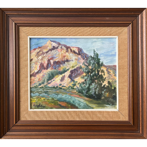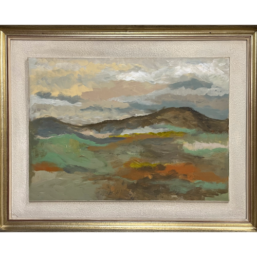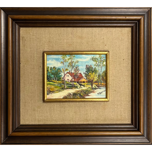 Pequeño paisaje, óleo sobre lienzo enmarcado en caoba. El marco tiene marcas y arañazos.