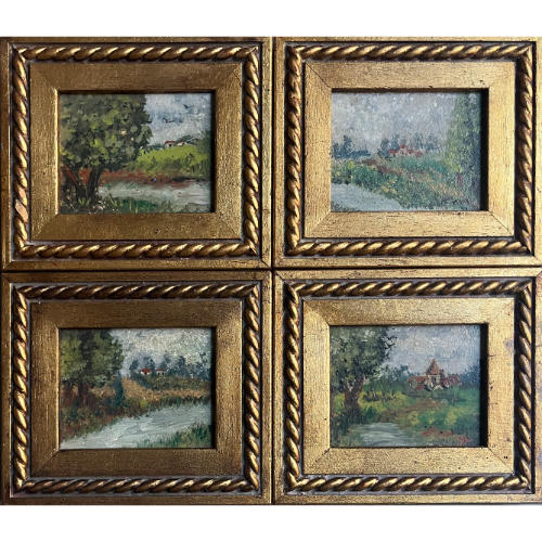 Cuadrito compuesto por cuatro paisajes enmarcados en dorado.