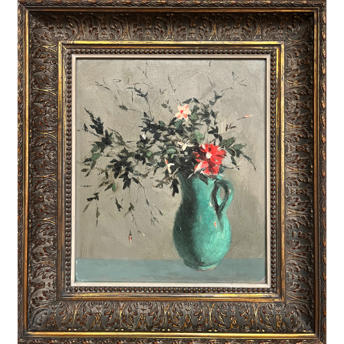 Bodegón floral con marco ornamental. 58×64 cm