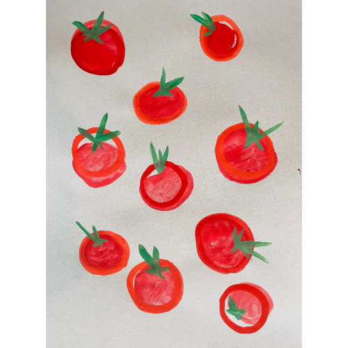 40,00€ – 100,00€ /semanaBodegón de fruta sobre mantel, gouache en papel gris.