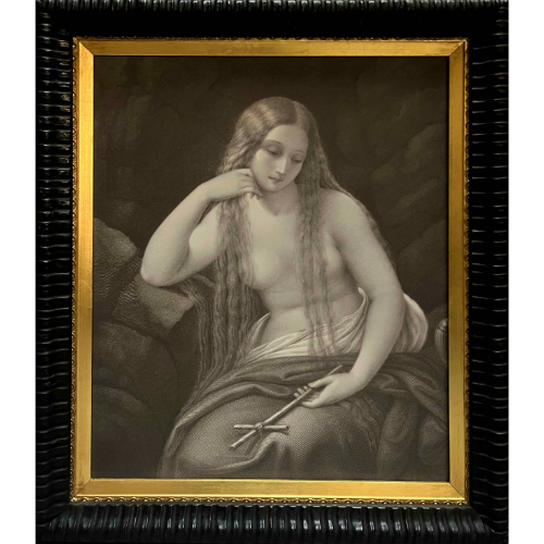 90,00€ /semanaReproducción de la Maddalena penitente de Boscolo, impresa en lienzo ambientado como óleo, enmarcado en madera negra lacada y marialuisa dorada.