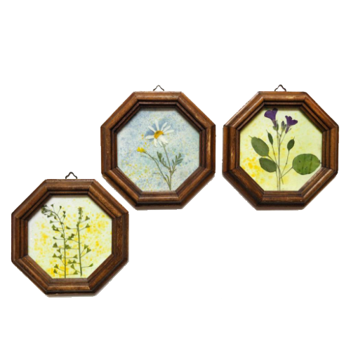 20,00€ /semanaPequeñas composiciones de flores secas naturales enmarcadas en marcos octogonales. Alquilables juntos (20€) o por separado (7€).