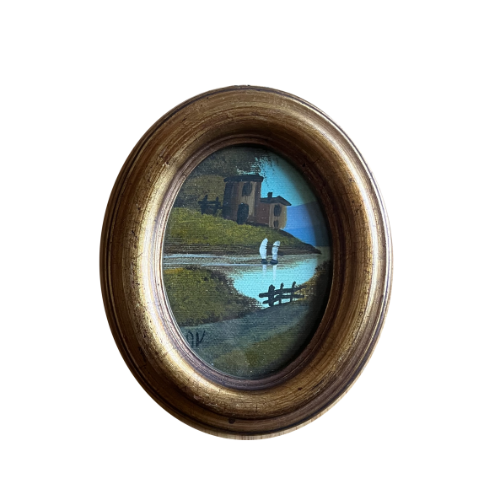 12,00€ /semanaPequeño óleo parte de una pareja, enmarcado en dorado y terciopelo.