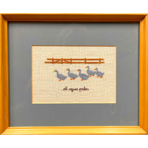 /semanaPatitos de petit point para habitación infantil, enmarcados con cristal.