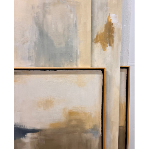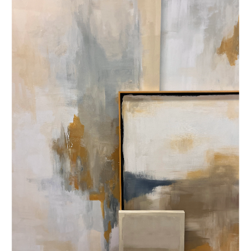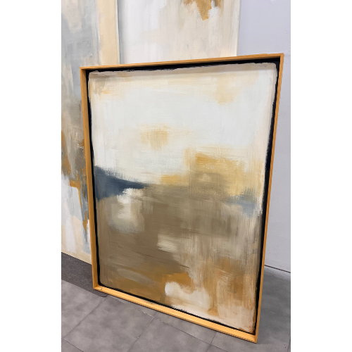 Cuadro abstracto en tonos tostados, acrílico sobre caja americana, parte de una serie de 2. 80×110 cm