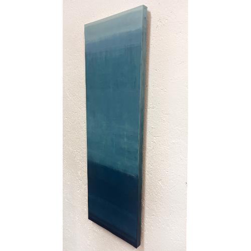 Cuadro abstracto en tonos azules, acrílico sobre madera. 40×120