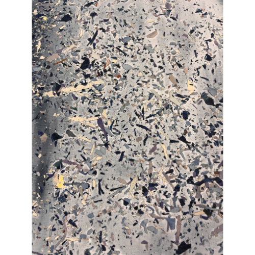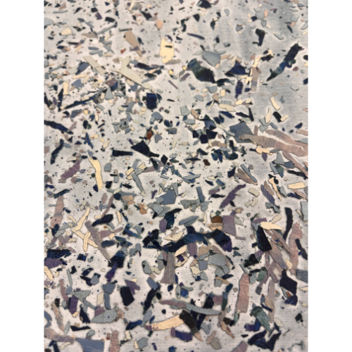 Cuadro mediano en tonos azules, collage de lascas de acrílico sobre lienzo en bastidor. Parte de una serie. 46×55 cm