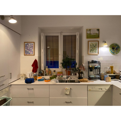 Collage de acuarelas en papel de alto gramaje, 30×42. Enmarcado.