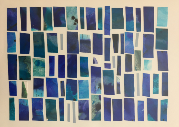 Collage de acuarelas en papel de alto gramaje enmarcado, 30×42. Enmarcado.