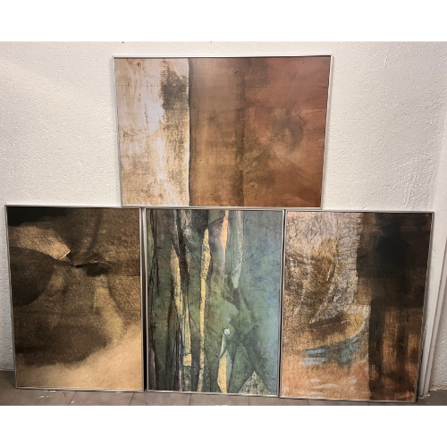 Abstracción en tonos rojos y azules, serie de 2. 100×100