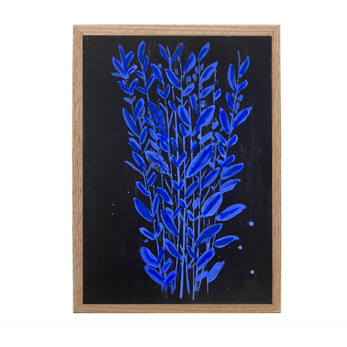 Ilustración de Isabel Moltó en índigo y negro. 50×70 cm