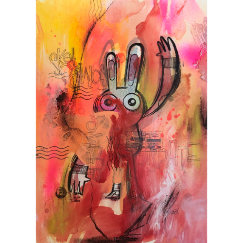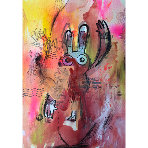 | Técnica y Soporte | Acrílico y sprays sobre papel de acuarela |
